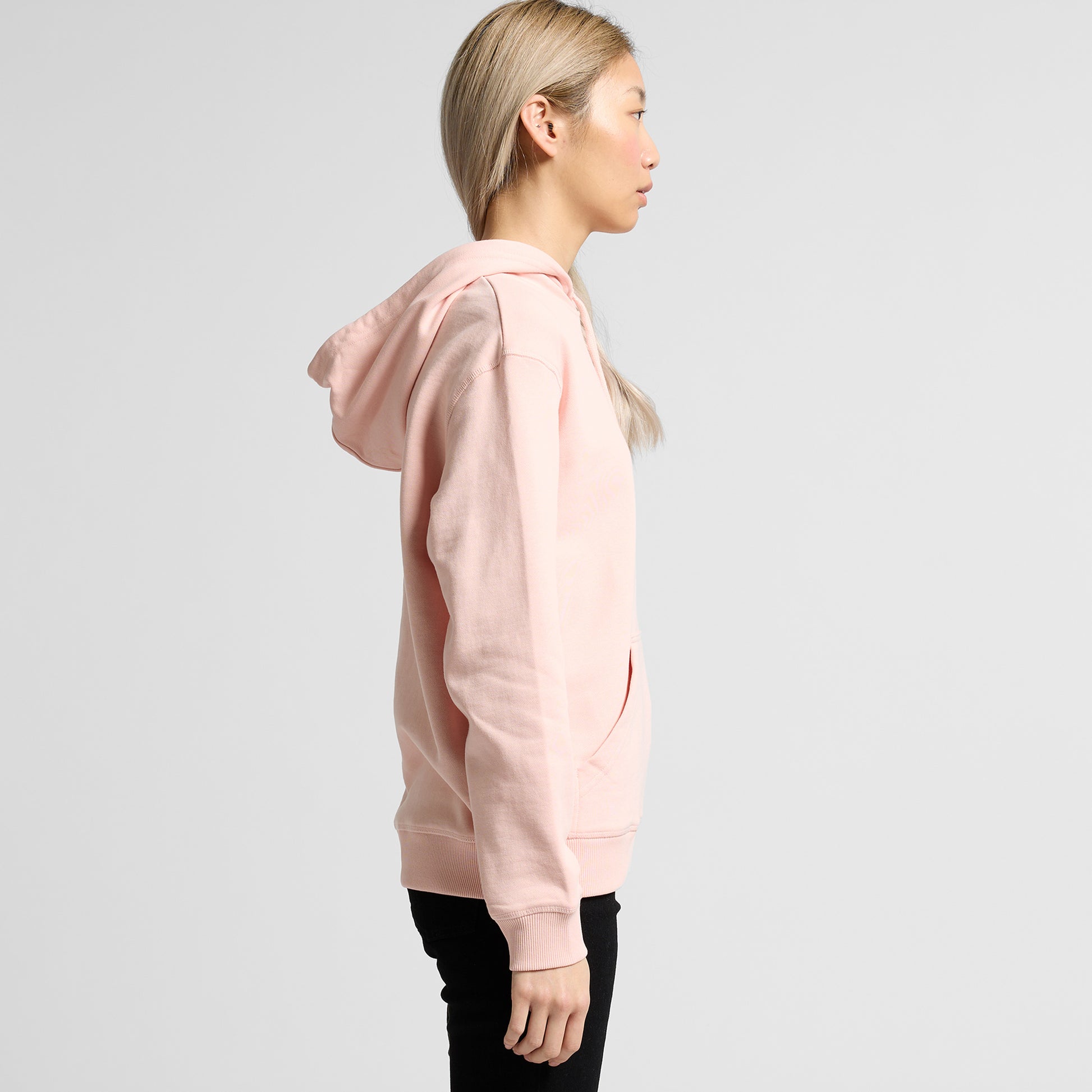 Pullover hood, inset sleeves, dropped shoulders, kangaroo pocket, tonal metal tipped drawcord